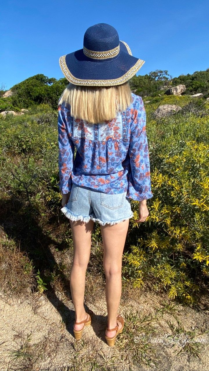 Mirage Top in stunning Blue, with apricot and dark blue floral detailing, features v-neckline with tie strings, with long flutter sleeves. Channel your inner bohemian goddess inside and out as the top feels so soft and the design so stunning. A must in every girls wardrobe. Perfect to pair with a denim skirt, jeans & shorts. Alternate your look to dress up with black pants and heels or wear casually every day in comfort.