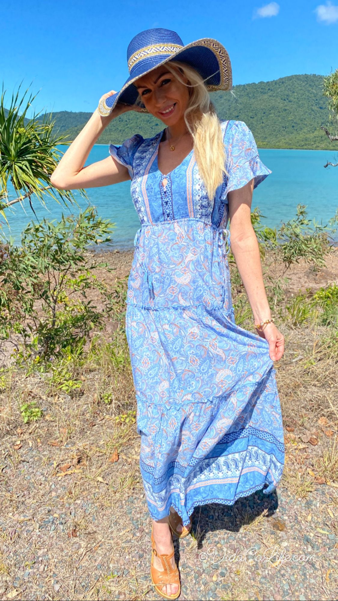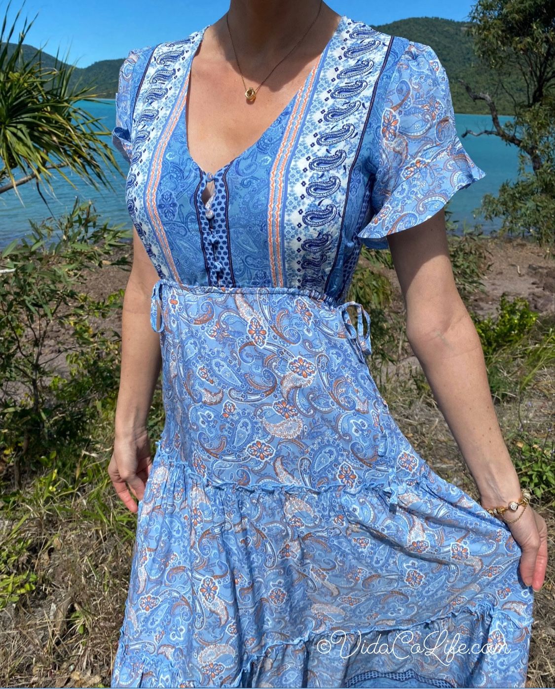 Brand New Shareen Collections Dress with a stunning floral bohemian print. Floral detailing, features v-neckline, button front through with short flutter sleeves with effortless waist tassel ties. The garment is perfectly put together. Channel your inner bohemian goddess inside and out as the dress feels so soft and the design so stunning. A must in every girls wardrobe. Can be worn casually and paired with a denim jacket and boots or dressed up with sandals and jewellery.